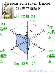 Dismounted Broken Lances 步行獨立槍騎兵 heavy infantry Broken lances are well trained and experienced professional soldiers, protected by plate mail, armed with swords. 步行獨立槍騎兵是經驗豐富軍 紀嚴明的職業部隊,身穿意大 利精良板甲,手持鋒利長劍。