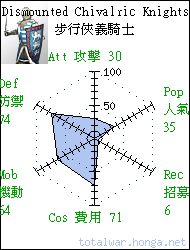 Dismounted Chivalric Knights 步行俠義騎士 heavy infantry Benefiting from improvements in arms and armour these elite warriors are still formidable, even when they choose to fight on foot. 俠義騎士裝備全鋼板甲,刀槍 不入,即便步戰廝殺威力同樣 恐怖。