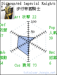 Number of turns to build, Cost of unit to construct, Cost of upkeep, Cost of upgrading weapons, Cost of upgrading armour, Cost for custom battles, Limit in custom battle, Cost for punish 徵召回合, 招募費, 維持費, 升級武器, 升級盔甲, 自訂戰役, 多於幾隊, 懲罰金額