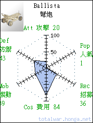 A Ballista Maker allows the construction of ballista siege weaponry. 弩炮工坊能夠製造攻城弩炮。 |