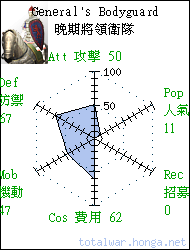 General's Bodyguard 晚期將領衛隊 heavy cavalry The combination of heavy armour, a fully armoured horse and a lance make these elite warriors mobile killing machines. 亞洲風格重甲、沉重騎槍和全 裝馬鎧令這支精銳將領衛隊成 為恐怖的殺戮機器。