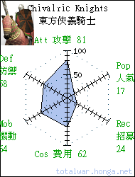 Chivalric Knights 東方俠義騎士 heavy cavalry Elite cavalry influenced by western techniques, this heavy cavalry is a force to be reckoned with. 東方俠義騎士是深受西方技術 影響的精銳騎兵,極為驍勇善 戰。