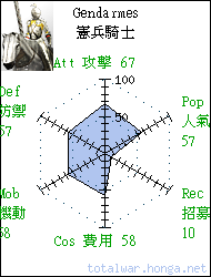 Gendarmes 憲兵騎士 heavy cavalry Superb well armoured professional heavy cavalry armed with a lance. 憲兵騎士屬於精銳重裝騎兵, 是手持騎槍的職業部隊。