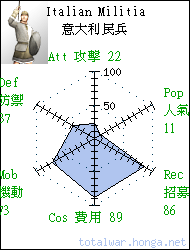 Number of turns to build, Cost of unit to construct, Cost of upkeep, Cost of upgrading weapons, Cost of upgrading armour, Cost for custom battles, Limit in custom battle, Cost for punish 徵召回合, 招募費, 維持費, 升級武器, 升級盔甲, 自訂戰役, 多於幾隊, 懲罰金額