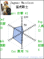 猛虎戰士是極為精銳的部隊,只有百戰勇士方可獲准身披美洲虎皮戰袍。其猛虎頭盔狀若噬人,標誌著他們驍勇善戰。猛虎戰士裝備類似於其他部隊,皆為棉布鑲甲、切瑪利皮盾和瑪喀霍特戰棍。