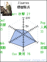 Jinetes 標槍騎兵 missile cavalry Fast and manoeuvrable light cavalry units, Jinetes hurl their javelins before closing in and fighting with their cavalry swords. 標槍騎兵來去如風,極為靈活。 對敵時率先標槍飛擲,然後揮 動長劍殺入敵陣。
