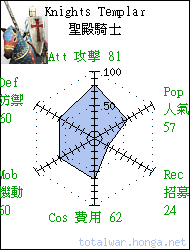 Knights Templar 聖殿騎士 heavy cavalry Elite and some say reckless knights formed to protect Christian pilgrims in the Holy Lands. 聖殿騎士是武裝護衛朝聖者前 往聖地朝聖的精銳軍隊。