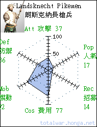 Landsknecht Pikemen 朗斯克納長槍兵 spearmen infantry Originally from the Holy Roman Empire, these elite mercenaries are armed with pikes and their distinctive slash and puffy clothing 朗斯克納長槍兵最初來自於神 聖羅馬帝國,裝備長槍,身穿 獨特的精緻寬鬆上衣和長襪, 是極為精銳的僱傭部隊。