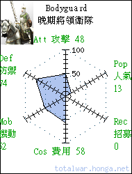 Bodyguard 晚期將領衛隊 heavy cavalry Men dedicated to protecting the general. Hand-picked for loyalty and valour. 將領衛隊是保護將領征戰沙場 的忠誠護衛,自軍中忠貞勇武 者內遴選而出。
