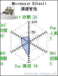 Number of turns to build, Cost of unit to construct, Cost of upkeep, Cost of upgrading weapons, Cost of upgrading armour, Cost for custom battles, Limit in custom battle, Cost for punish 徵召回合, 招募費, 維持費, 升級武器, 升級盔甲, 自訂戰役, 多於幾隊, 懲罰金額