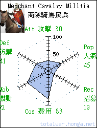 Merchant Cavalry Militia 商隊騎馬民兵 heavy cavalry Poorly trained, but well equipped cavalry who fight with a sword. 商隊騎馬民兵以長劍作戰,他 們裝備精良,但訓練較差。