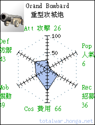 A Royal Arsenal allows for the construction of the finest siege artillery available. 皇家軍械廠能夠製造各類更為先進的火炮。 |