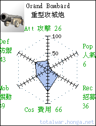 A Royal Arsenal allows for the construction of the finest siege artillery available. 皇家軍械廠能夠製造各類更為先進的火炮。 |