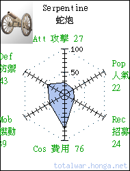 Serpentine 蛇炮 missile siege Light cannon designed for use against troops rather than walls. 蛇炮是用於專門殺傷敵軍部隊 而非轟擊城牆的輕型加農炮。