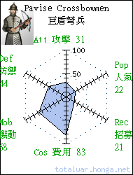 儘管弩弓極易使用,威力強勁,但部隊裝填速度較慢,因此易受攻擊。這些弩兵背負全身巨盾,需要裝填弩箭時即背對敵軍,以盾牌面敵,形成有效防護。