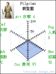 Number of turns to build, Cost of unit to construct, Cost of upkeep, Cost of upgrading weapons, Cost of upgrading armour, Cost for custom battles, Limit in custom battle, Cost for punish 徵召回合, 招募費, 維持費, 升級武器, 升級盔甲, 自訂戰役, 多於幾隊, 懲罰金額
