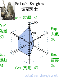 Polish knights, "rycerz", are an example of the westernisation of Polish armies. These well trained and elite troops are well equipped with plate armour and lances, making them a fearsome addition to any Polish army. The Polish nobility were some of the best knights in Europe.