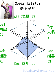 長矛民兵在歐洲隨處可見,通常為招入本地民兵部隊的平民,負責防禦城鎮、道路或支援主力部隊。他們訓練尚佳,裝備長矛和盾牌,協助重裝或精銳部隊作戰時表現出色。