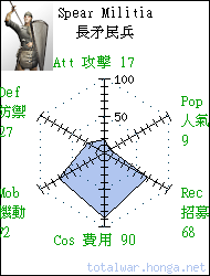 長矛民兵在歐洲隨處可見,通常為招入本地民兵部隊的平民,負責防禦城鎮、道路或支援主力部隊。他們訓練尚佳,裝備長矛和盾牌,協助重裝或精銳部隊作戰時表現出色。