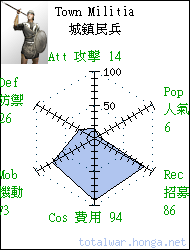 城鎮民兵不穿盔甲,使用短矛作戰。他們來自城鎮平民,應徵入伍防禦自己的家園,有時亦會外出作戰。儘管城鎮民兵防禦城邑頗為盡職,但並非精銳野戰部隊。
