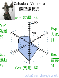 Sabadar Militia 薩巴達民兵 missile infantry Equipped with axe and composite bow, these excellent, though quite unruly warriors, are Shi-ite militia from Central Asia. 薩巴達民兵是來自中亞地區的 什葉派民兵,裝備戰斧和復合 弓,做戰極為驍勇,但桀驁驕 橫,軍紀較差。