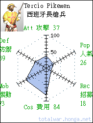 Tercio Pikemen 西班牙長槍兵 spearmen infantry Superior armoured pikemen, known for their discipline and determination. 西班牙槍兵盔甲精良,是軍紀 森嚴的職業部隊,作風極為強 悍。