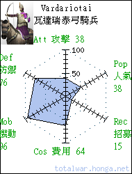 Vardariotai 瓦達瑞泰弓騎兵 missile cavalry Disciplined and highly trained, the Vardariotai wear light armour and fire a composite bow from horseback. 瓦達瑞泰弓騎兵軍紀森嚴,訓 練有素,身穿輕型鏈甲或鑲甲, 使用強力復合短弓。