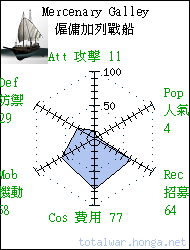 Number of turns to build, Cost of unit to construct, Cost of upkeep, Cost of upgrading weapons, Cost of upgrading armour, Cost for custom battles, Limit in custom battle, Cost for punish 徵召回合, 招募費, 維持費, 升級武器, 升級盔甲, 自訂戰役, 多於幾隊, 懲罰金額